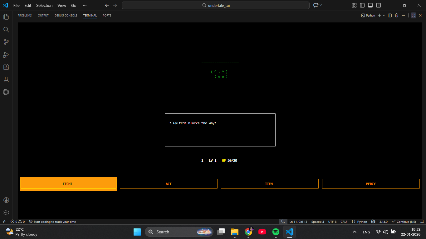 A TUI Recreation of UNDERTALE! In Python!